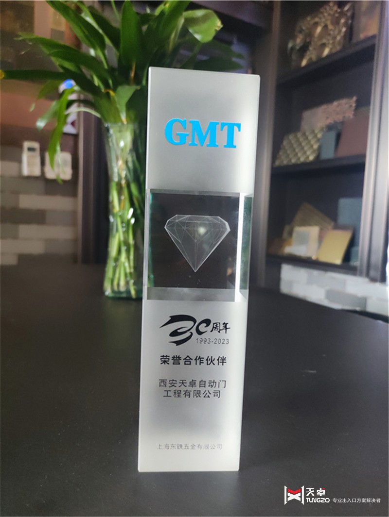 于2023年7月17日,西安天卓自動門的董事長卓天倫受邀參加了上海東鐵GMT30周年優(yōu)秀合作伙伴大會。西安天卓自動門是上海東鐵GMT的一級代理商,負責銷售GMT地彈簧、GMT閉門器、GMT自動門、GMT旋轉門以及其他小五金配件,例如合頁鉸鏈、拉手、貓眼和門檔。此次大會在陜西西安舉行,標志著GMT對西北市場的高度重視。西安天卓自動門在此次大會上榮獲GMT30周年榮譽合作伙伴獎項,同時還有陜西儒藝工貿有限公司、成都XX等幾家公司獲得了次獎勵。除了頒獎典禮,GMT還推出了新款的地彈簧、閉門器和智能鎖。