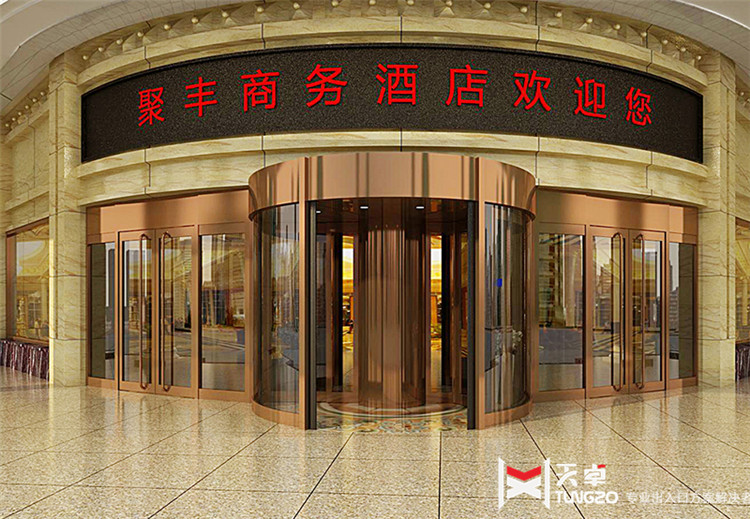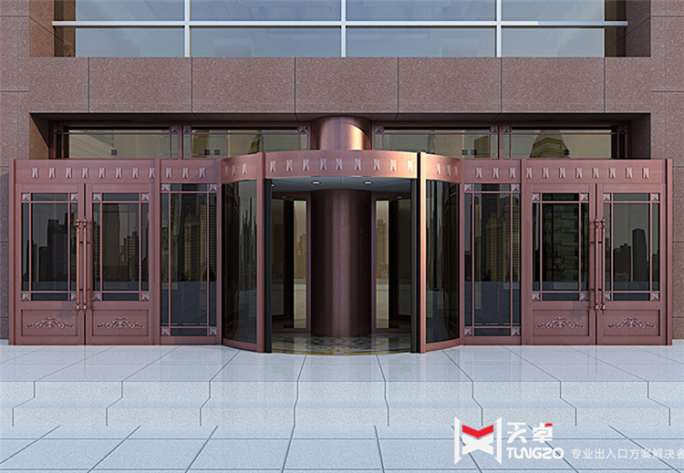 西安天卓牌環(huán)柱式三翼,四翼旋轉門,很好的解決了建筑物入口中心有承重結構柱無法安裝旋轉門的難題。它將承重結構柱包飾起來作為旋轉門的中心柱,門扉及展箱繞柱旋轉,體現(xiàn)出豪華氣派的美感。環(huán)柱旋轉門外觀補素大方,運行安全穩(wěn)定。能有效的隔斷內外氣流、防風、防塵、靜音、保持內部溫度。